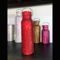 镶钻双层保温运动水壸 贴钻户外304不锈钢便携美式补水杯粉红/500ml 缺货