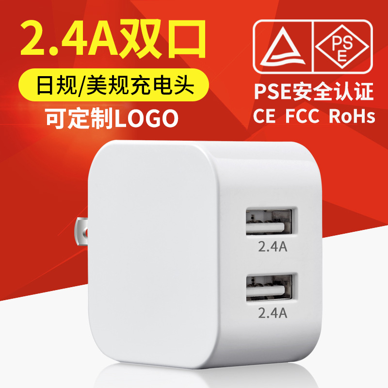 定制日规5V 2.4A双口PSE认证折叠充电器12W充电头USB多口适配器