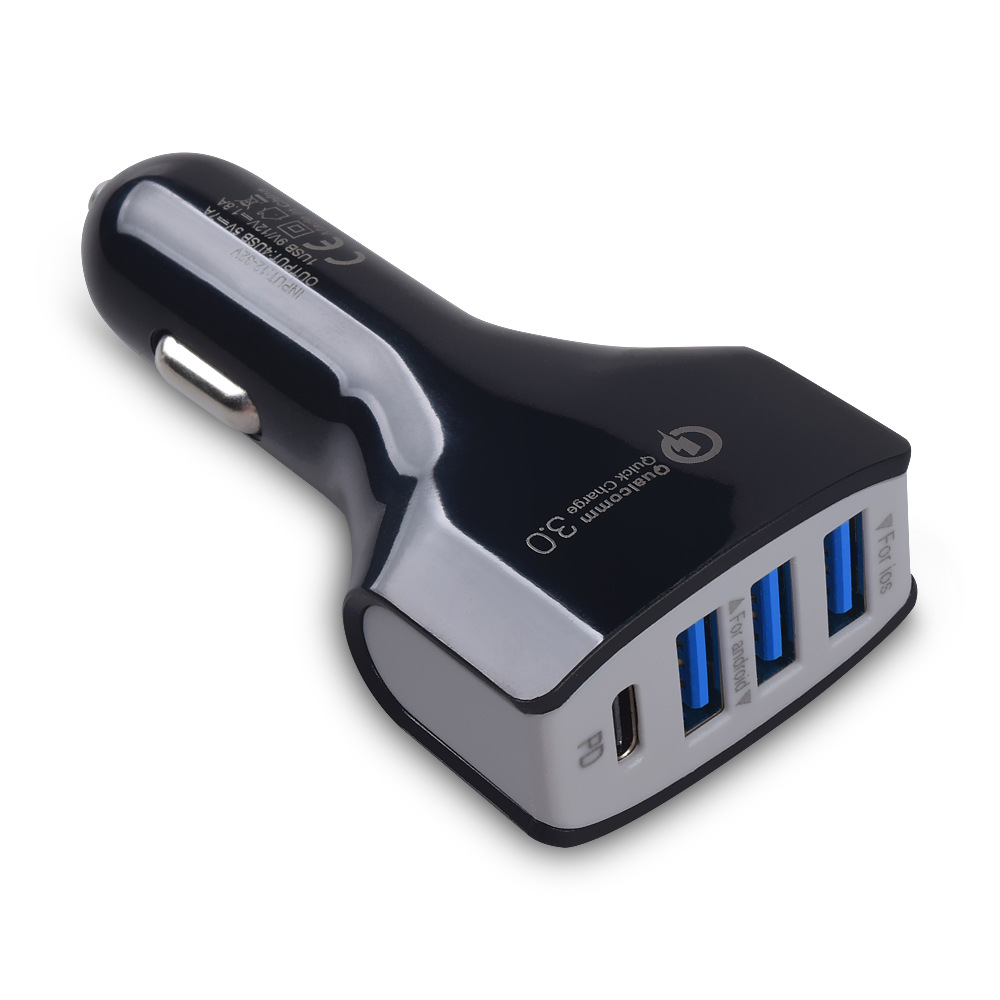 跨境TYPE手机多口智能车充5V车载4USB充电器QC3.0汽车充电头批发