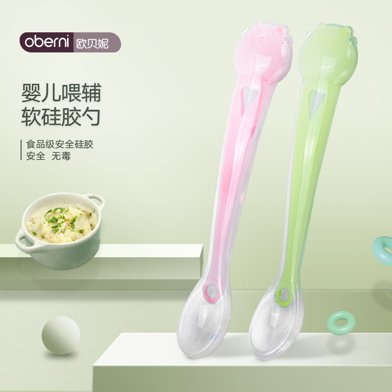 欧贝妮 婴儿辅食喂饭勺 硅胶柔软宝宝汤饭小勺汤匙婴幼儿用品厂家