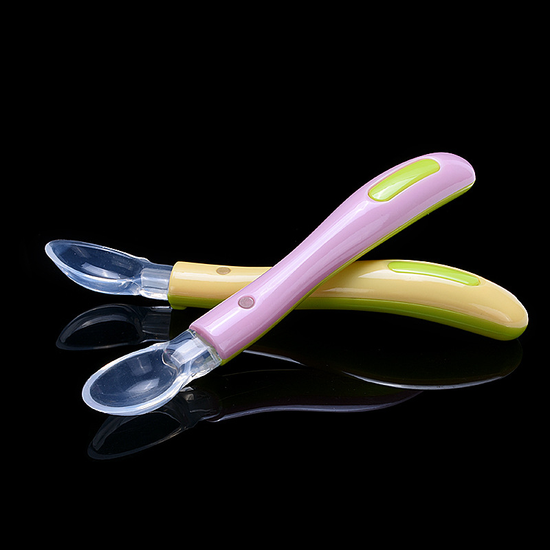 欧贝妮 遇热感温变色勺婴儿喂养辅食汤饭硅胶小勺子厂家现货代发