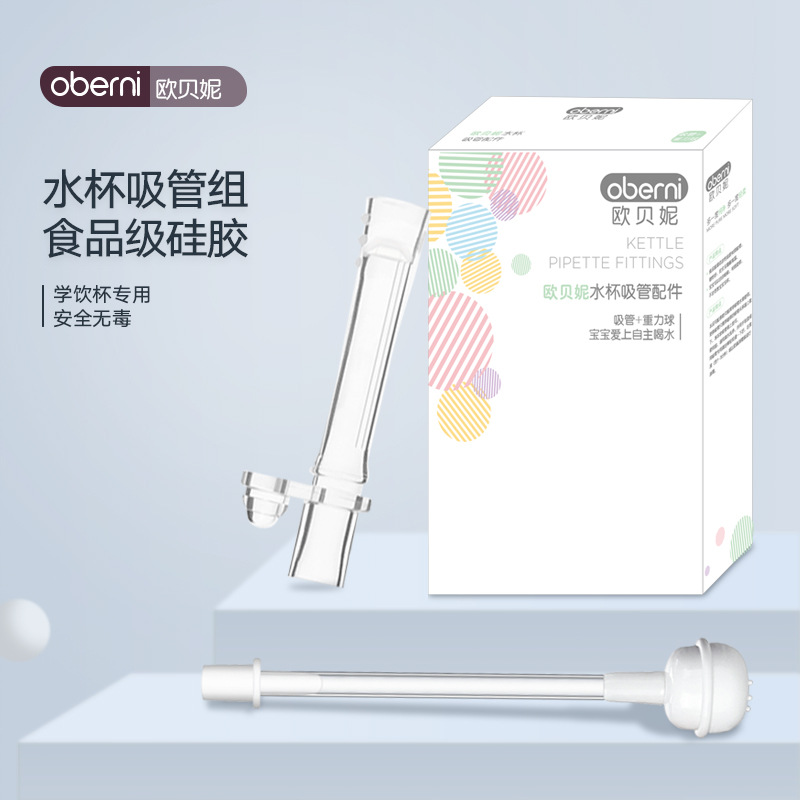 欧贝妮PPSU水杯学饮杯硅胶吸管组吸管刷宽口吸管杯配件带重力吸球