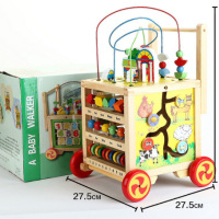 新款木质儿童学步车 婴儿助步车 多功能调速木制益智四面绕珠玩