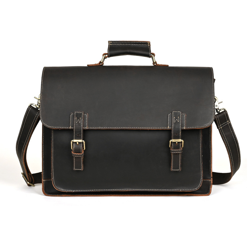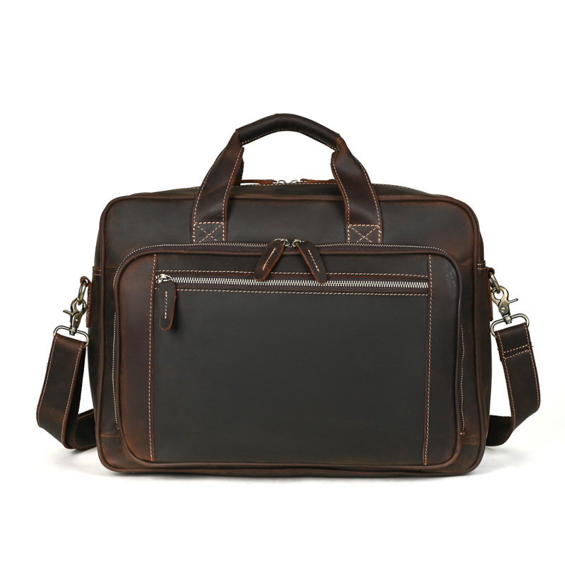 European and American retro crazy horse leather men's portable Briefcase leather large capacity multi-functional business single shoulder messenger bag