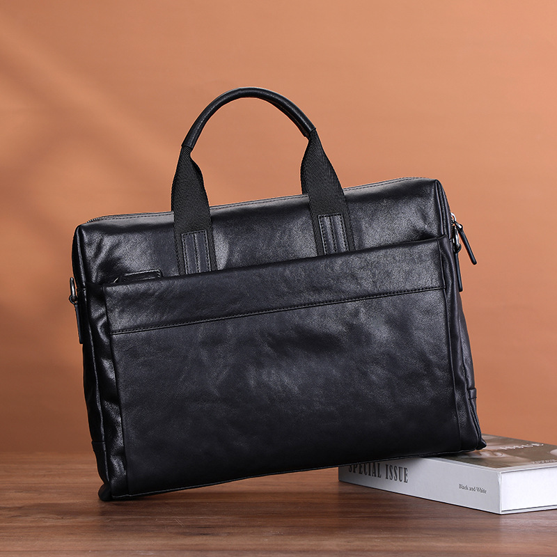 2023 high-end men's handbag leather leather top layer cowhide business leisure men's Briefcase horizontal handle computer bag