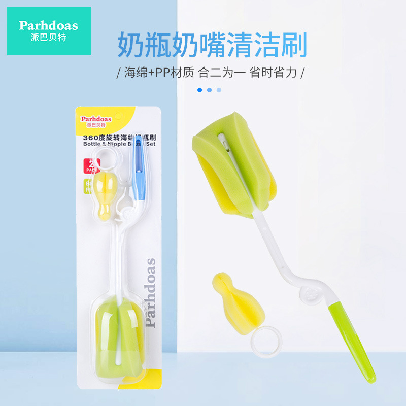 派巴贝特 360度旋转海绵头奶瓶清奶嘴刷洁刷二合一套装70867