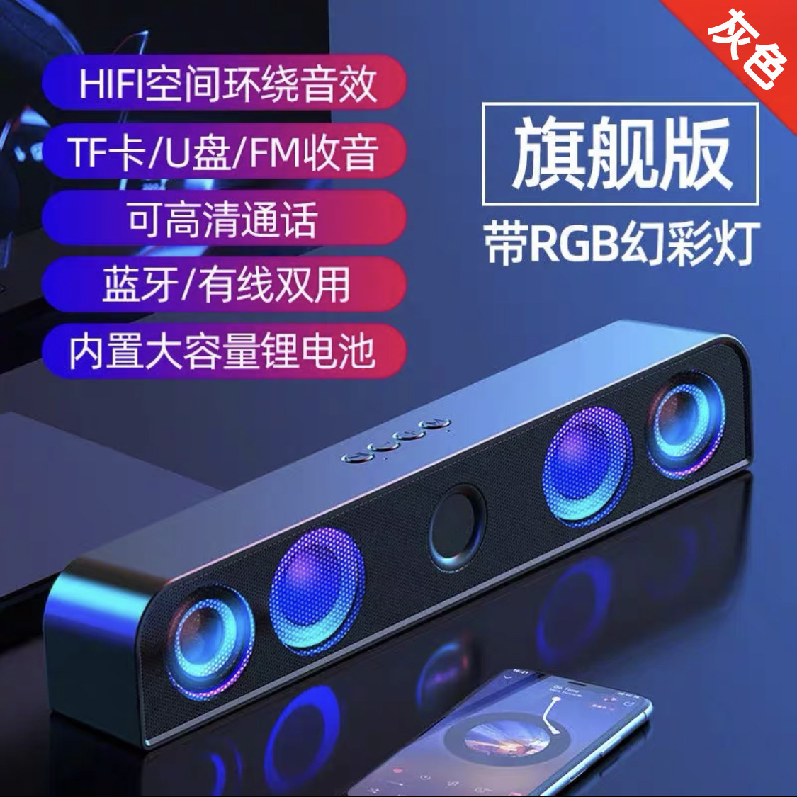 跨境桌面低音炮音箱10W大功率多媒体电脑音响 七彩灯声霸蓝牙音箱