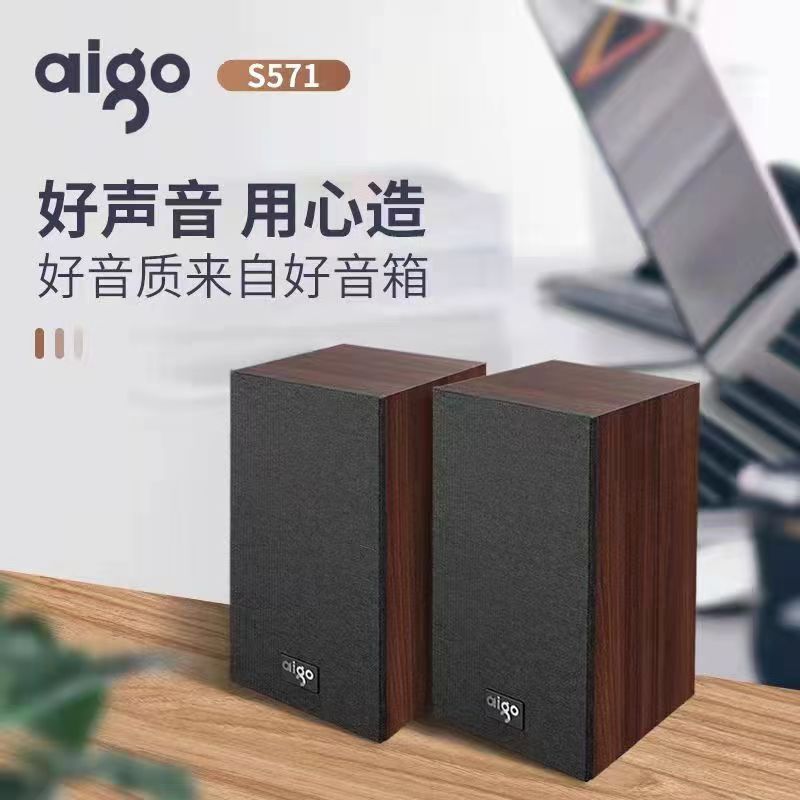 爱国者S571台式电脑音响2.0木质小音箱重低音
