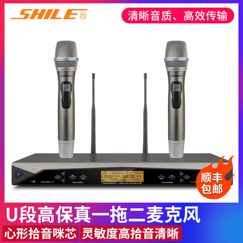 狮乐 SH-11U段无线会议麦克风手持一拖二舞台演出家用KTV金属话筒