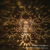 跨境热销太阳能灯笼户外挂灯铁艺镂空投影灯太阳能庭院装饰灯 缺货