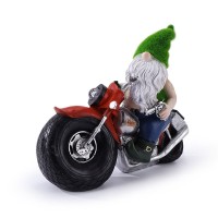 跨境太阳能装饰户外卡通侏儒摩托车树脂雕像桌面小矮人工艺摆件 缺货