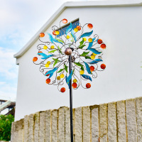 现货批发太阳能铁艺双面彩色旋转风车户外花园别墅园林景观装饰 缺货