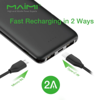 【MMY】Maimi Mi13 Powerbank 10000 mAh备份电池Maimi具有白色、黑色、免费充电电缆X39
