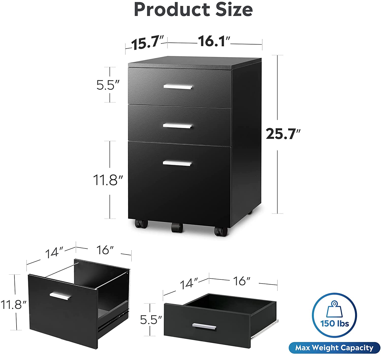 | 包装清单 | 3 抽屉木质移动文件柜,用于 letter/A4 尺寸的滚动文件柜,黑色 |