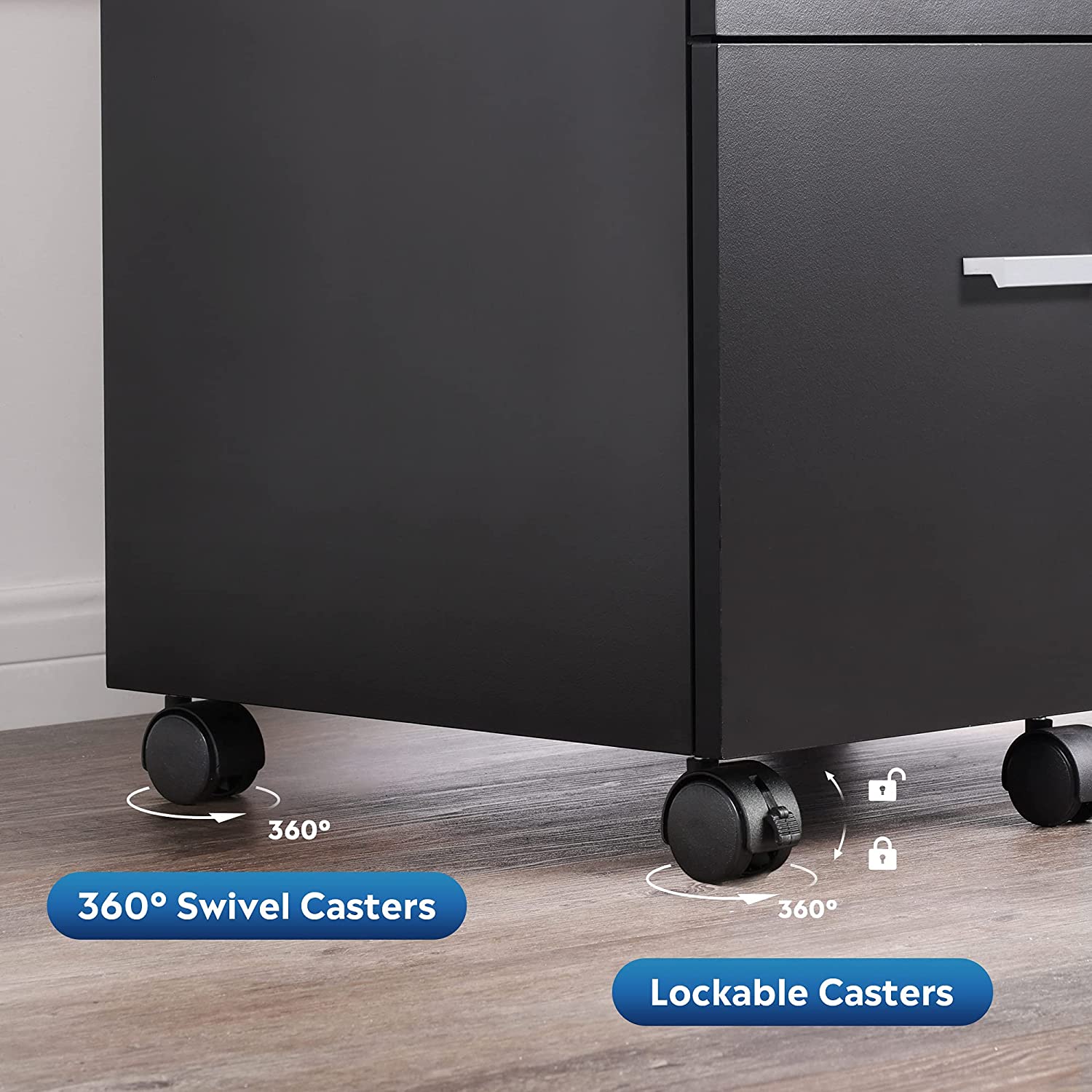 3 抽屉木质移动文件柜,用于 letter/A4 尺寸的滚动文件柜,黑色
