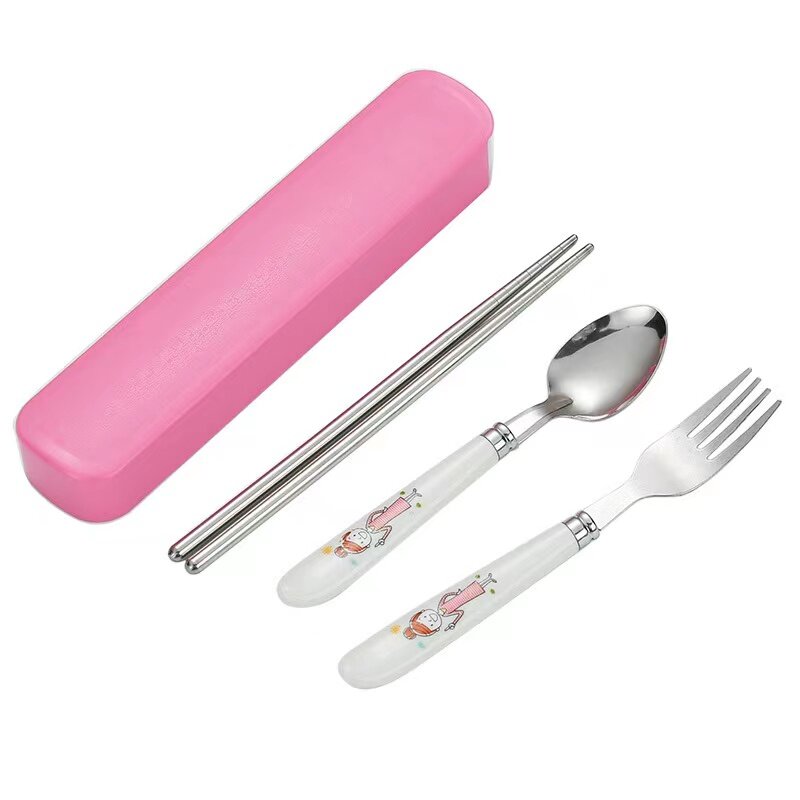 ชุดช้อมส้อมตะเกียบลายการ์ตูน กล่องช้อนส้อม ชุดช้อนส้อมพกพา