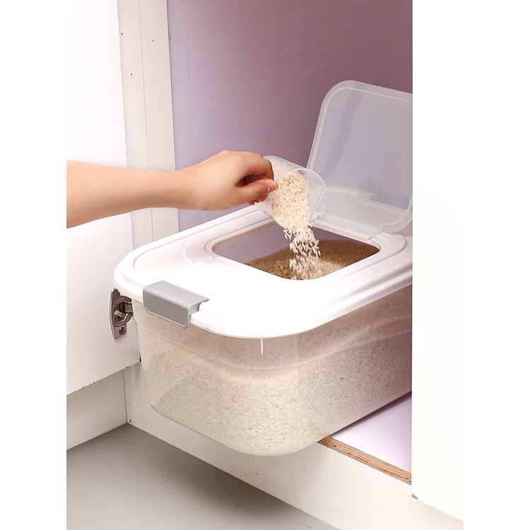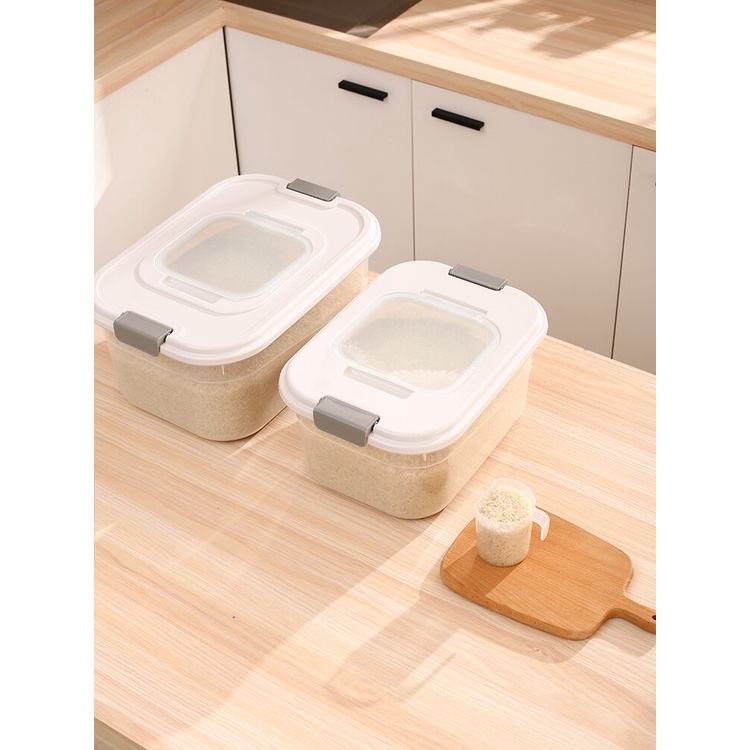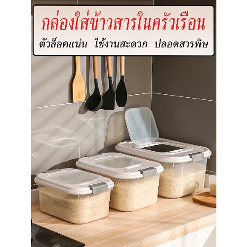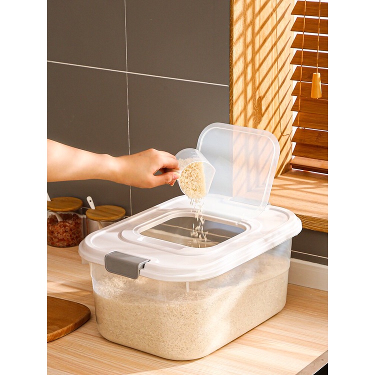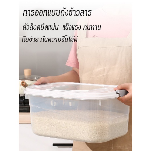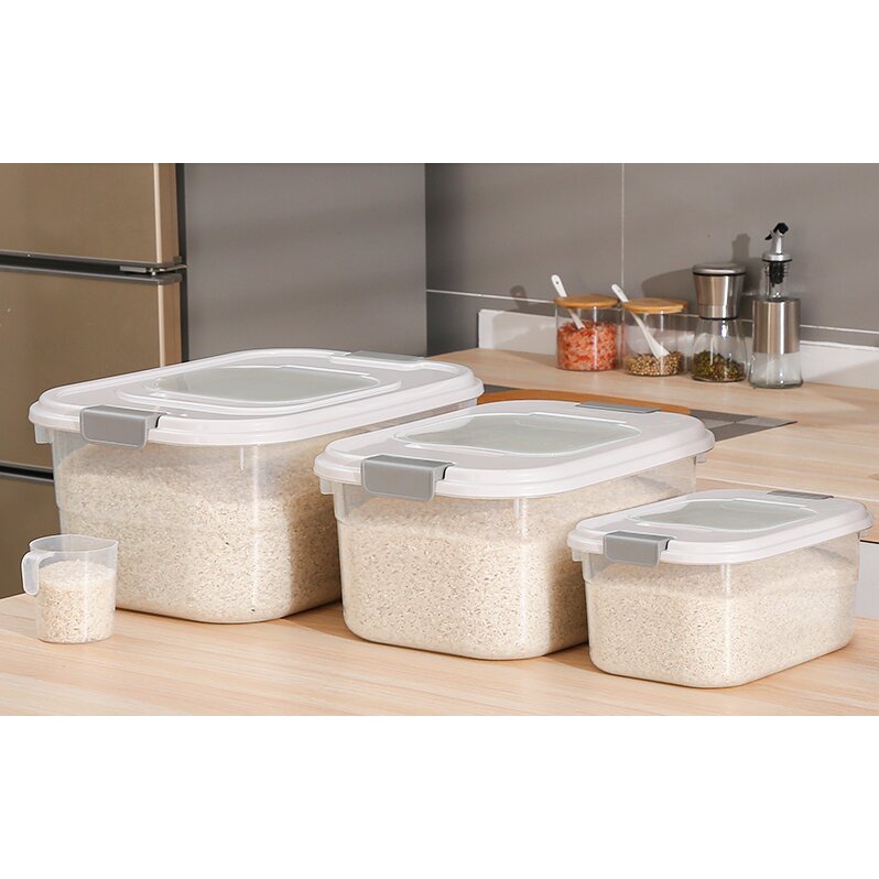 H214-กล่องใส่ข้าวสาร กล่องเก็บข้าวของใช้ในครัวเรือน มี 3 ขนาด สีใส พร้อมถ้วยตวง