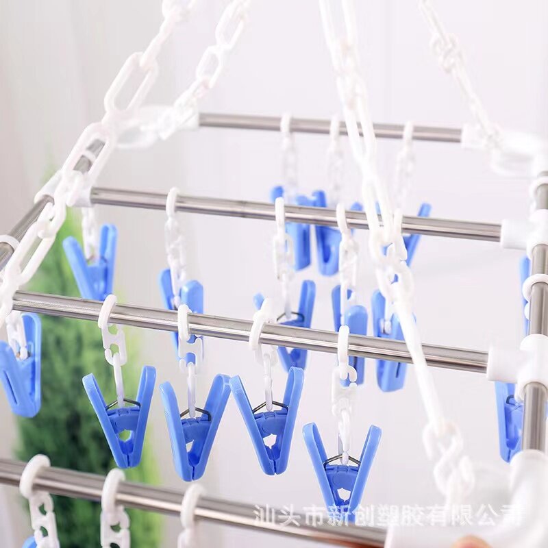 产品详情 衣架与链状底座相连,360度旋转挂钩,自锁式衣架头。用衣架帮助伸展。防止它容易脱落,可以挂很多衣服,每个隔间保持良好的距离。夹子做工很好,不脱落也不容易掉,有锯齿,增加摩擦力,PP材质坚固耐用,可以扭成螺旋状。耐-20度-120度的温度,可折叠,节省更多空间。材料相当厚实,坚固,有助于更持久产品名称:晾衣环,塑料晾衣绳,带夹子,衣夹,塑料衣夹,衣夹,袜子夹,材质:PP
