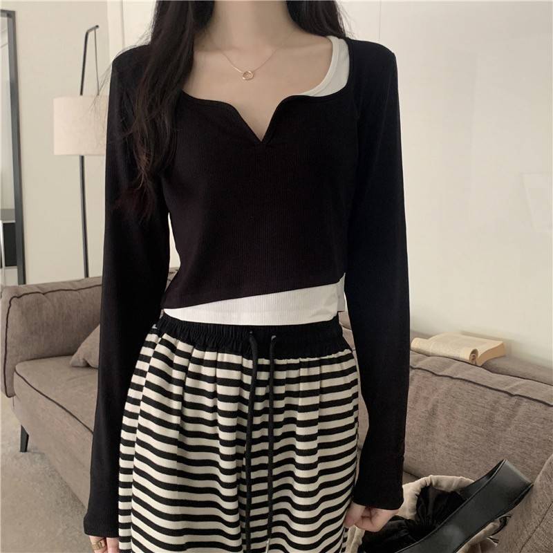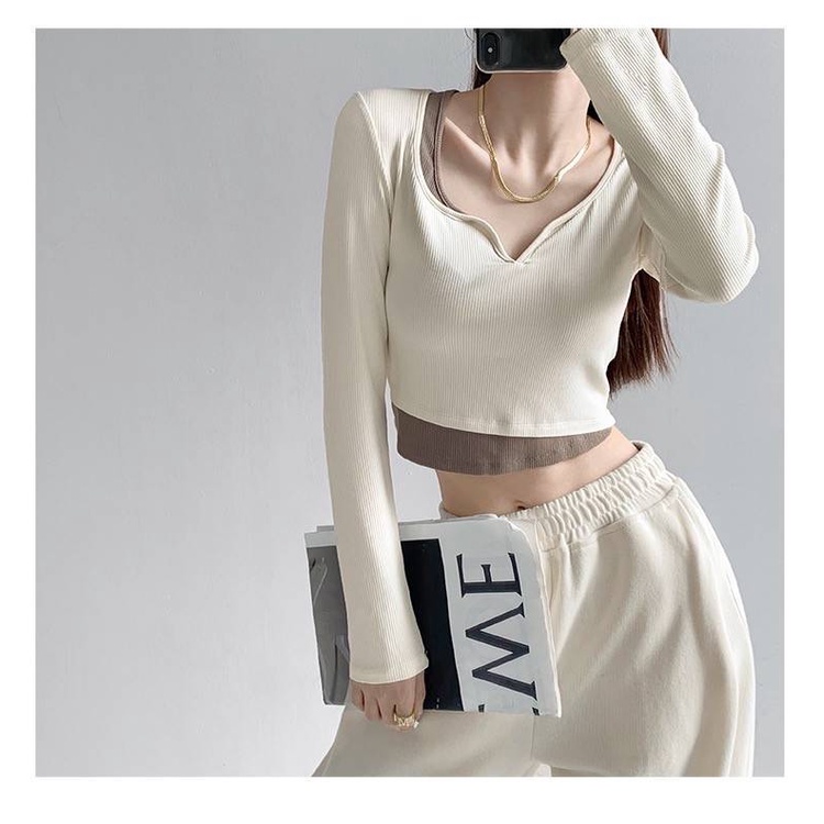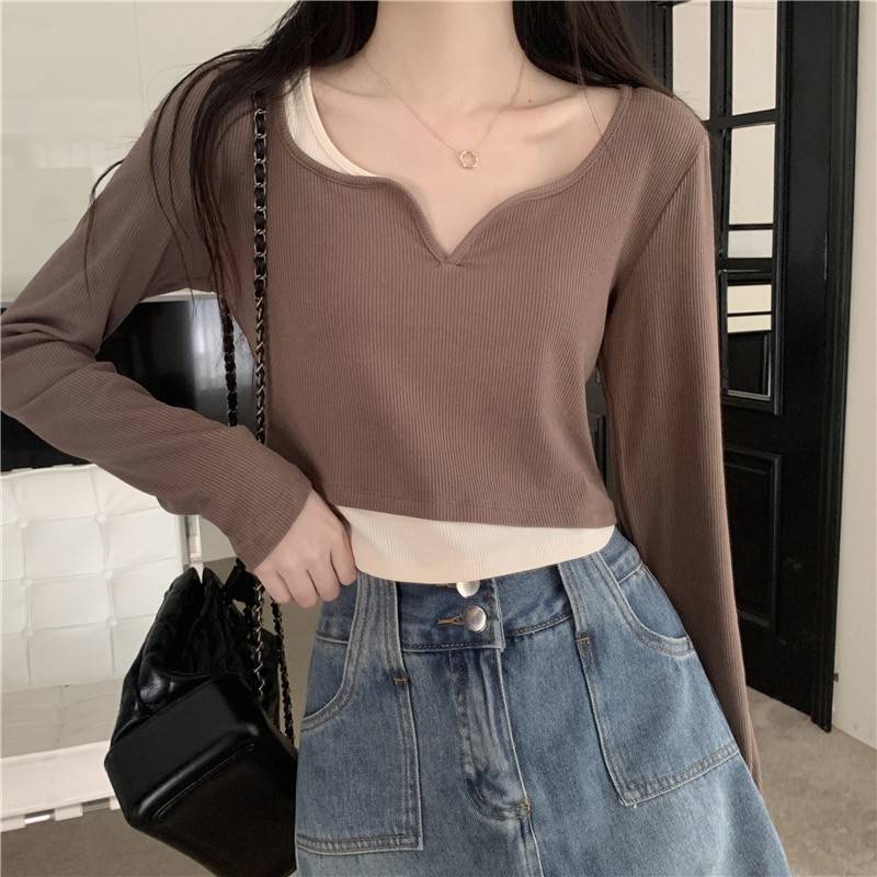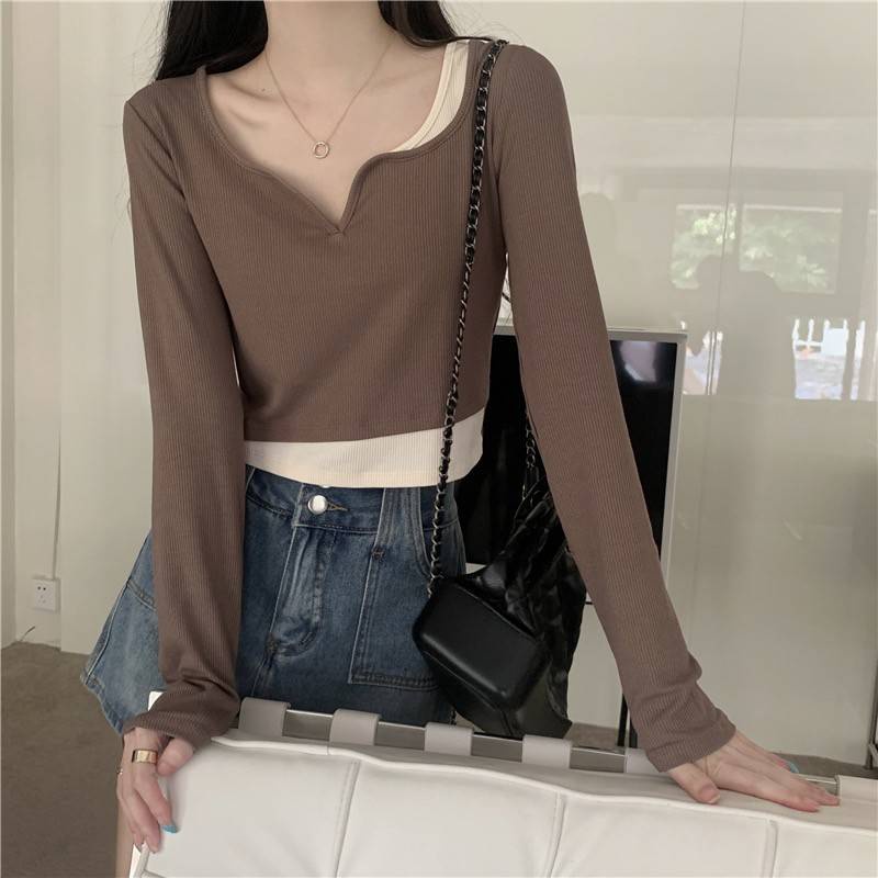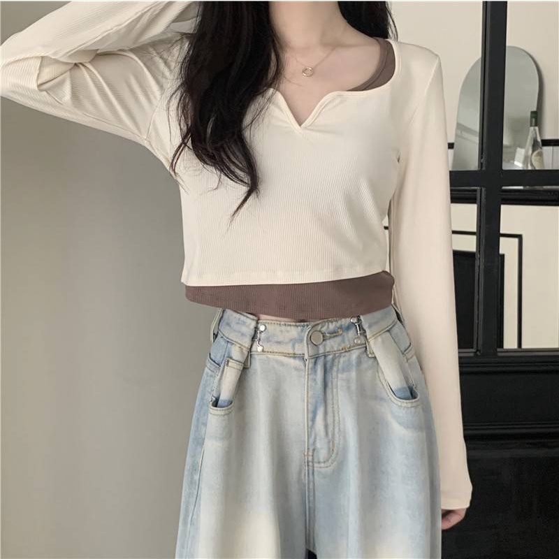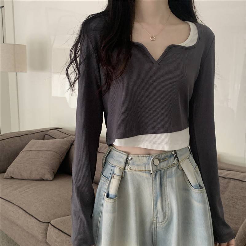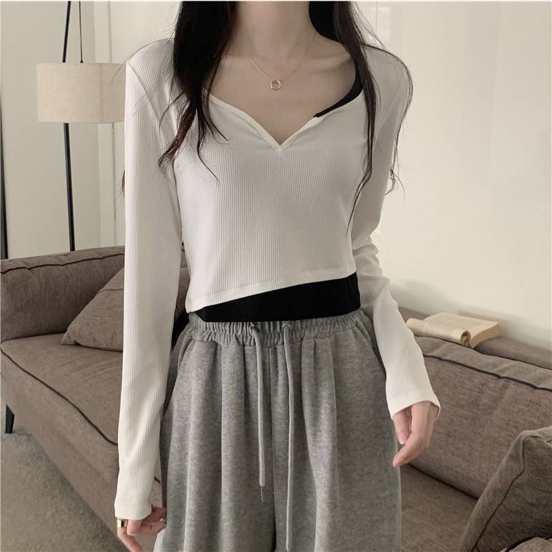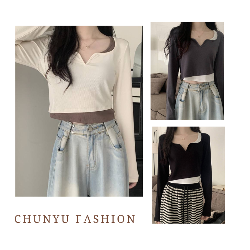 【chunyu】✨เสื้อแขนยาว เสื้อผู้หญิง เสื้อครอปแขนยาว เสื้อผ้าแฟชั่น 60106-1#
