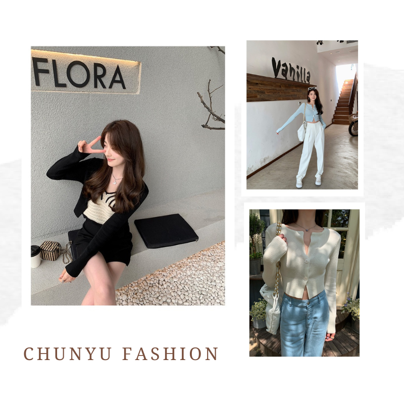 【chunyu】✨เสื้อไหมพรม เสื้อคลุมคอปก สีน่ารักสดใส่ 5912-1#