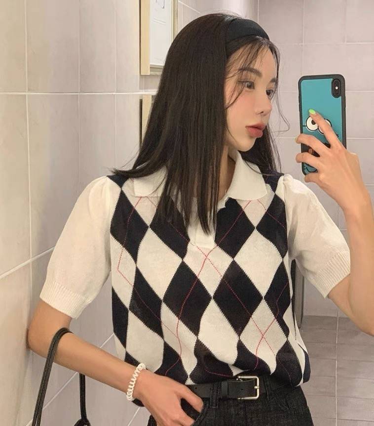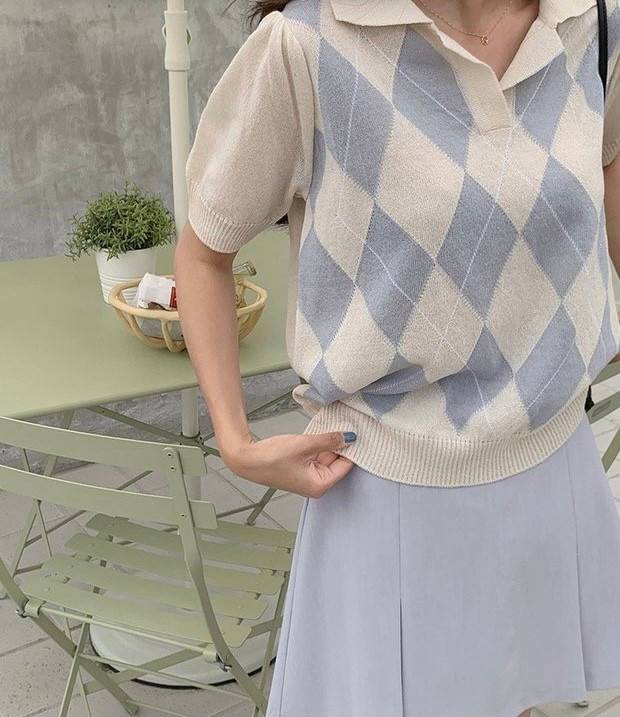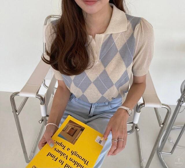 ✨ 真丝领衬衫 流行的格子图案 所有柔和的颜色 一个明亮的可爱