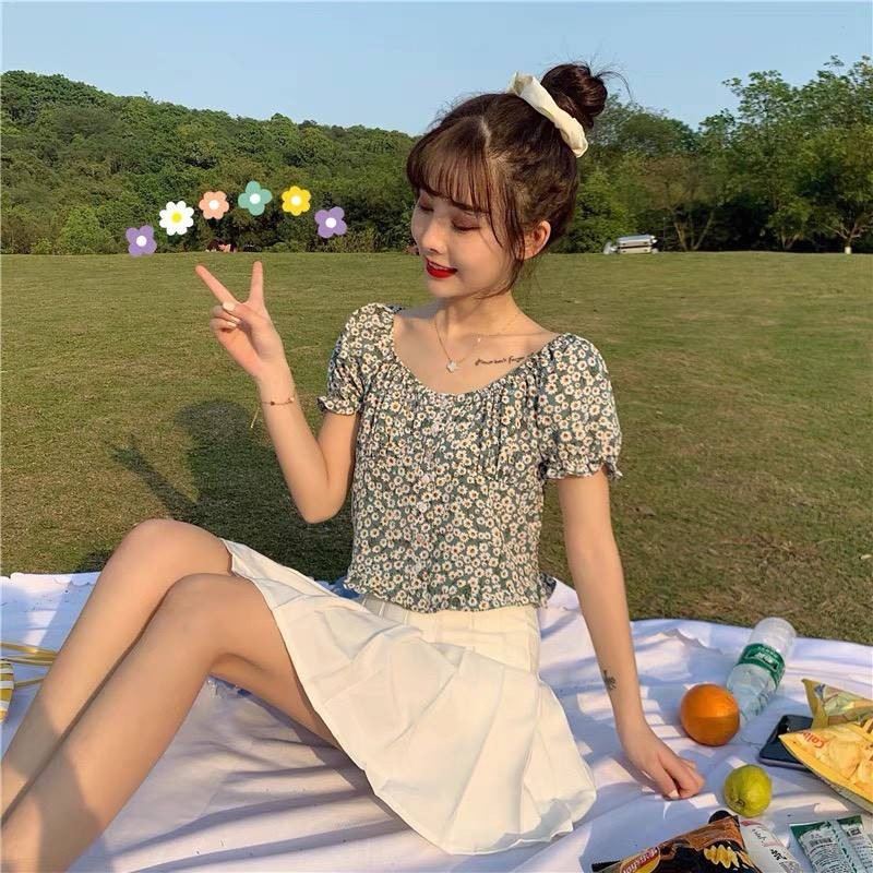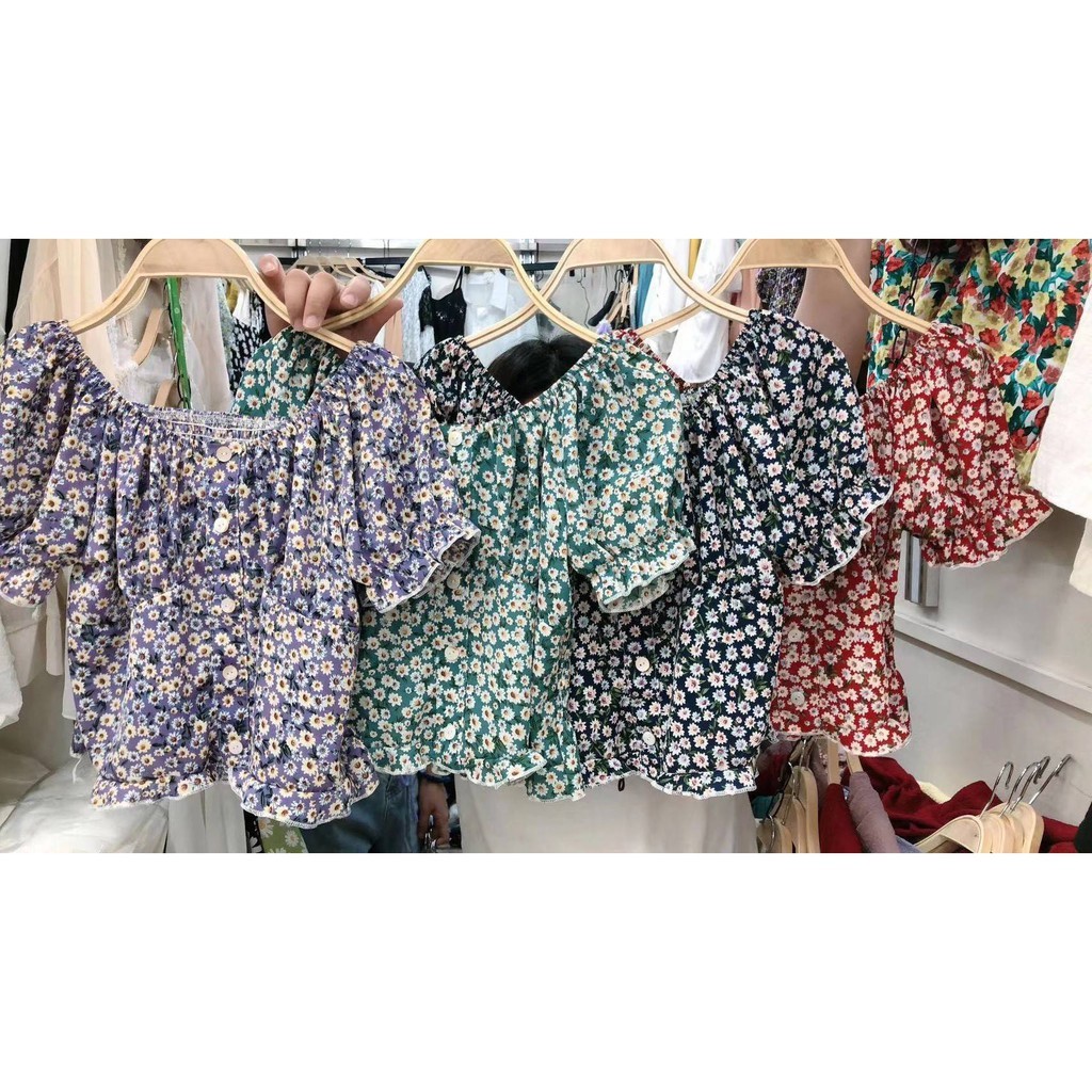 【chunyu】เสื้อปาดไหล่ลายดอกมินิมอลต้อนรับซัมเมอร์ค่าคุณพรี่ 817-1