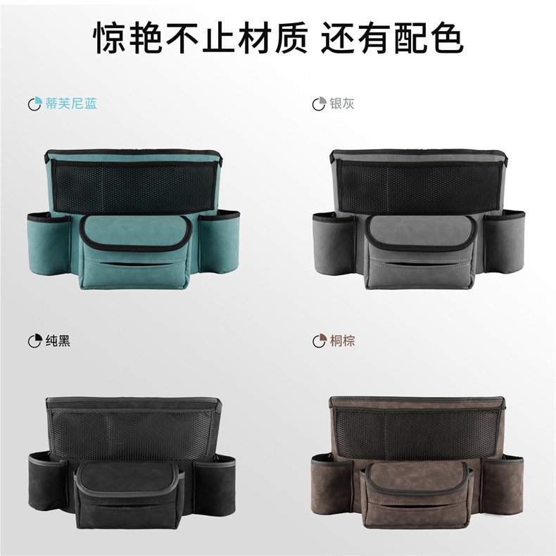 汽车座椅中间收纳储物网兜多功能车载翻毛皮整理置物带车载收纳包