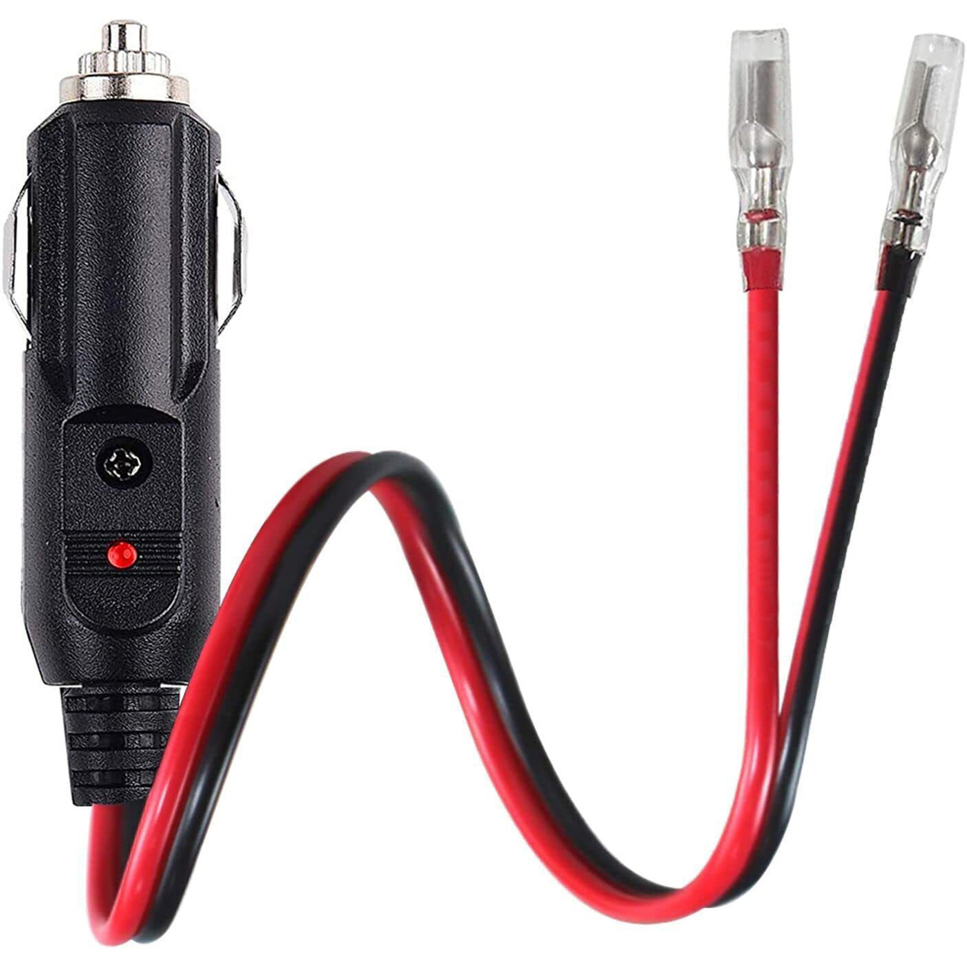 2件 12V 24熔合点烟器插头公插头带引线LED灯16AWG 15A保险丝 1FT