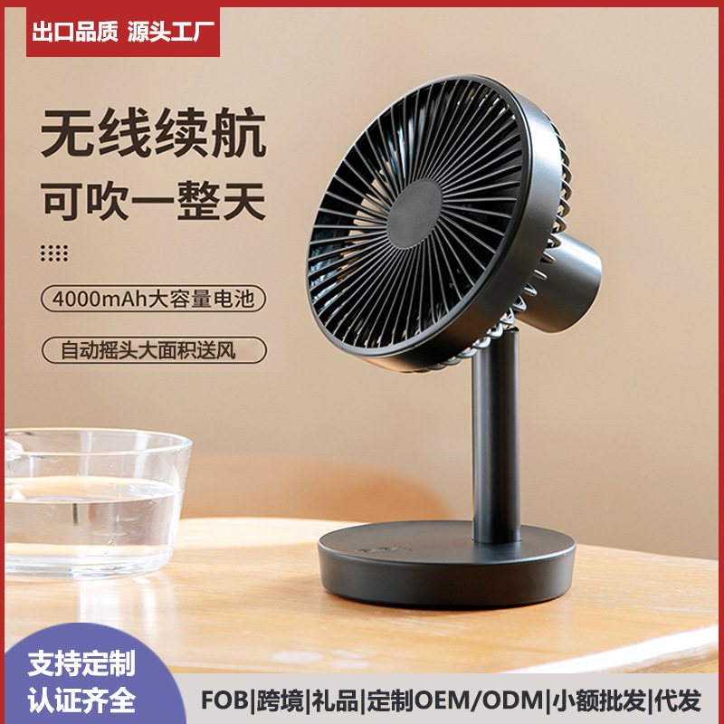 新款桌面风扇 USB小风扇简约台式办公桌面小型电扇充电摇头电风扇