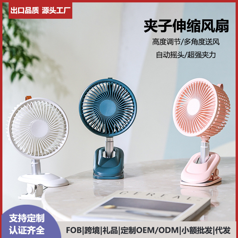 New USB Fan Mini Clip Fan Rechargeable Telescopic Shake Head Desktop Fan Gift Factory Wholesale
