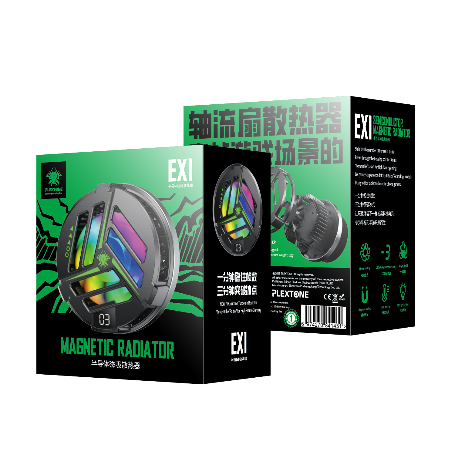 新款浦记EX1 手机散热器RGB半导体制冷降温平板背夹磁吸风扇静音