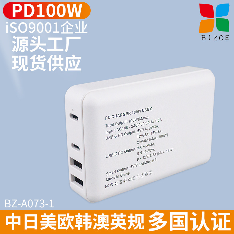 Cross border four port 100W charger suitable for Android iPhone laptop fast charging USB smart adapter
