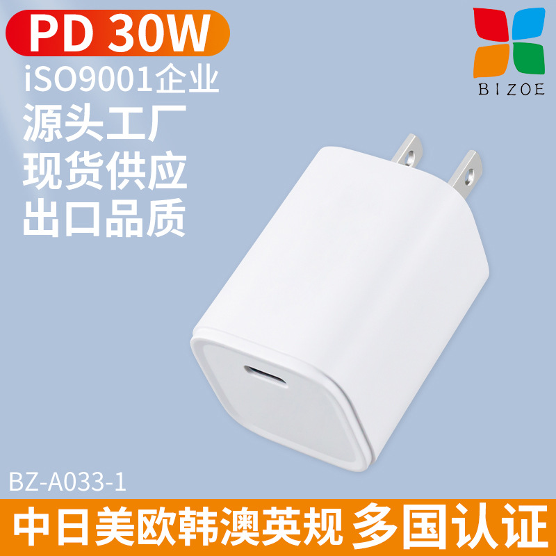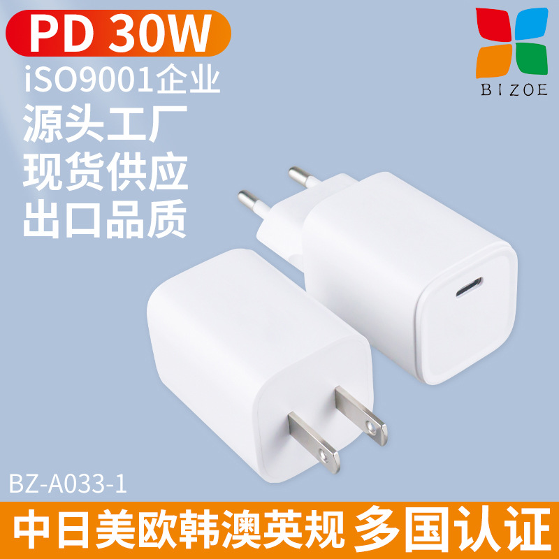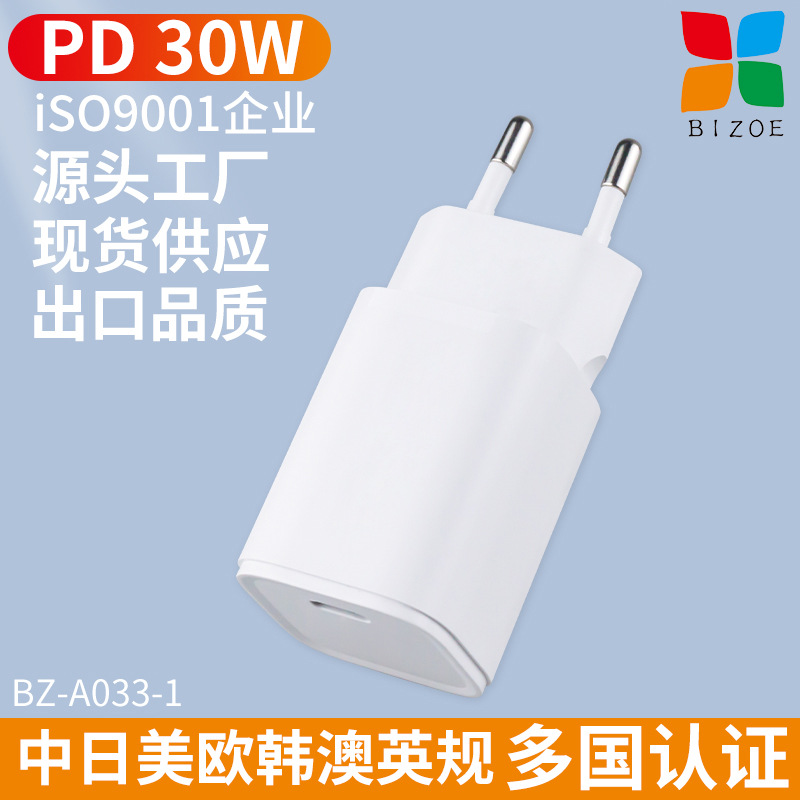 跨境迷你PD30W氮化镓GaN快充充电头欧规单口适用苹果13手机充电器