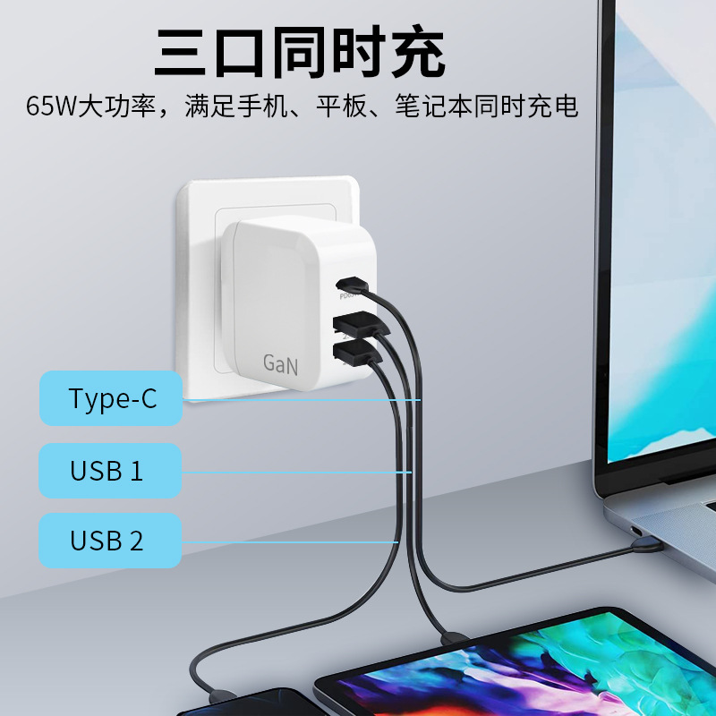 Gallium nitride 65w charger PSE certified charging head USB multi port charger mobile phone computer PD fast charging head