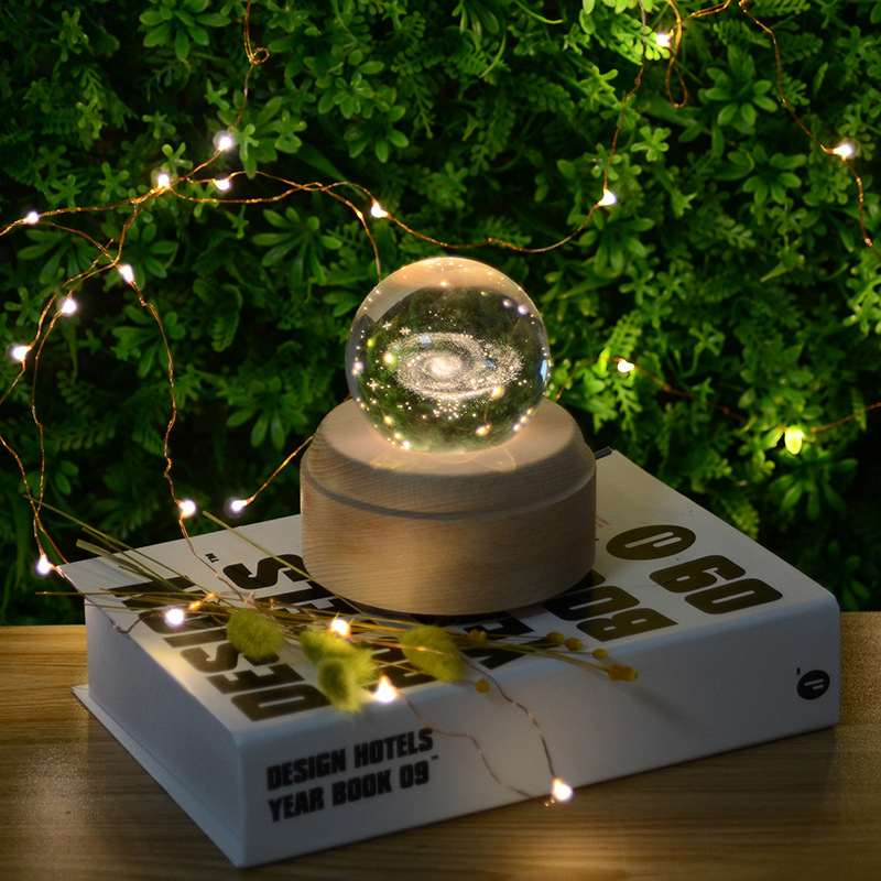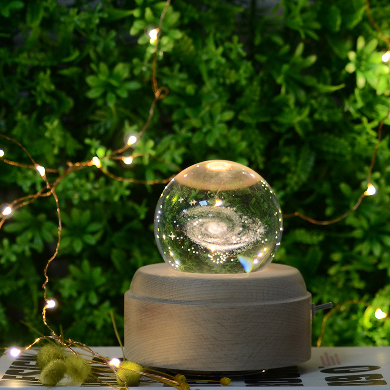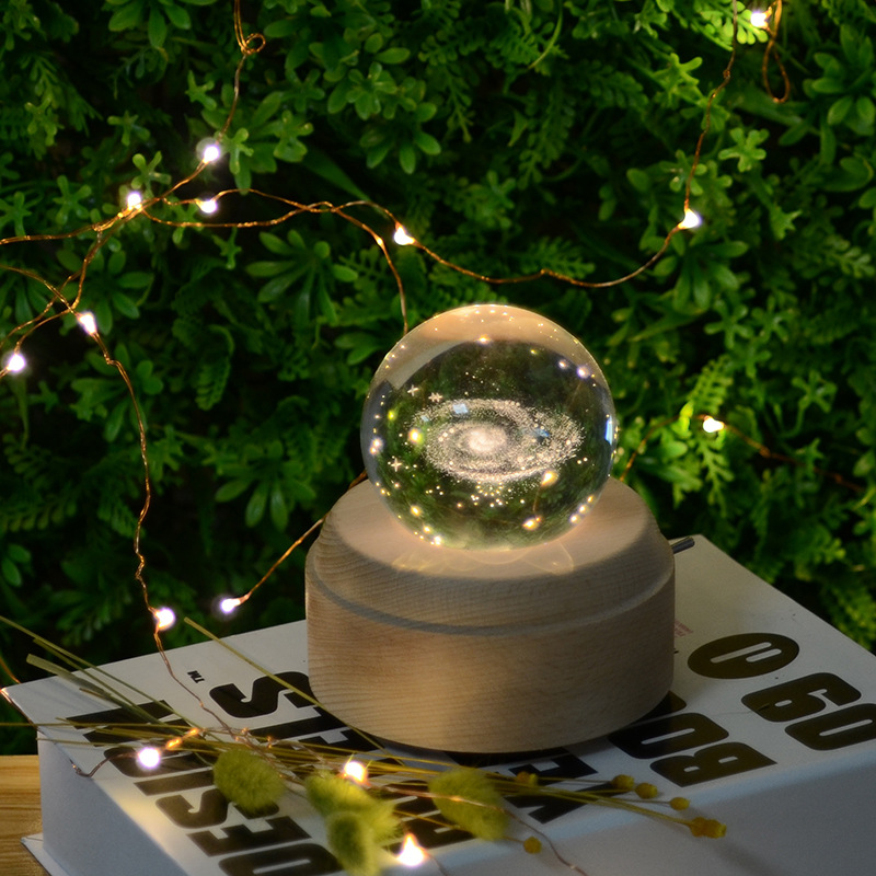 创意礼物银河系3D小夜灯新款旋转水晶球音乐盒卧室床头灯