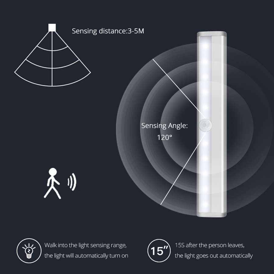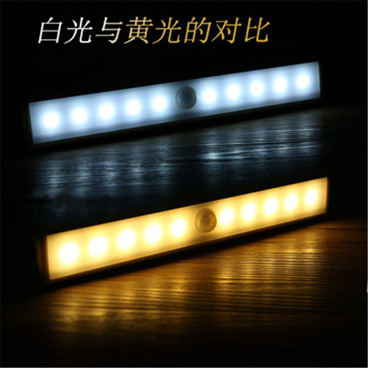 包装清单 充电池自动感应橱柜灯10LED人体USB长条衣柜灯楼梯小夜灯