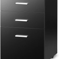 3 抽屉木质移动文件柜,用于 letter/A4 尺寸的滚动文件柜,黑色