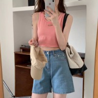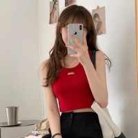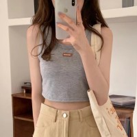 【chunyu】 เสื้อกล้ามปักป้ายหนังด้านหน้าต้อนรับซัมเมอร์1868