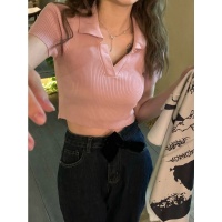 【chunyu】✨เสื้อครอปคอปกสีสันสะดุดตา มินิมอล 3238#