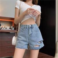 【chunyu】✨破洞印花款式高腰牛仔短裤0388#