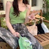 Chunyu✨เสื้อสายเดี่ยมไหมพรมกรุดุมดอกไม้ 07105#